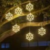 Big Snowflake and Festive: Two large sturdy metal snowflakes with a size of 13inch, each with 70 cool white LED lamp beads, making them very noticeable and draw attention to your home on Christmas. Our snowflakes lights are double and it is the perfect addition to any Christmas celebrations!